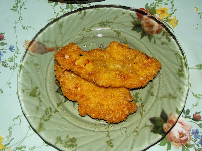 Se trec snitelele prin compozitia de ou se scurg bine si apoi prin fulgii de porumb si se pun in uleiul incins pana se rumenesc.