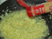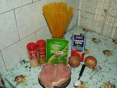 Dupa 3 minute adaugam usturoi, curry si carnea.
