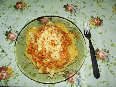 Pastele se scot si se trec sub un jet de apa rece dupa care se pot servi cu sosul de carne si cu cascaval.