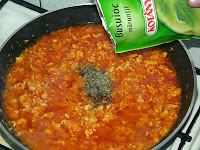 Lasam sa fiarba in sucul propriu vreo 5 minute si adaugam sarea si bulionul. Compozitia obtinuta o lasam la foc mic pana carnea isi schimba culoarea. Adaugam busuiocul si mai lasam 1 minut la foc mic.