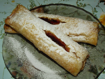 Se continua cu restul de foi, asezind rulourile unul linga altul nu prea inghesuite. La urma se ung rulourile cu ou si se stropesc cu putin zahar, pentru culoare. Se coc 20 minute, pana se rumenesc usor, la foc potrivit spre mare.