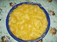 Torni aluatul intr-o forma de tarta unsa cu unt topit. Asezi merele pe aluat, si introducem forma la cuptor, la foc potrivit, pentru 40-45 de minute.