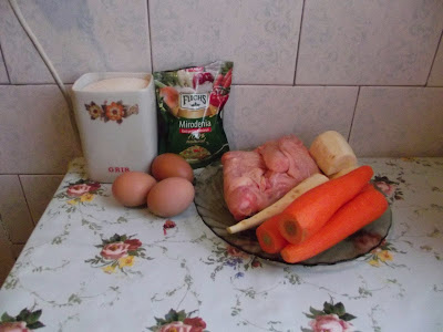 Taie carnea in bucati, pune-o la fiert si aduna spuma. Imediat ce carnea nu mai face spuma adaugam legumele, morcovul l-am dat pe razatoarea mare iar patrunjelul si pastarnacul l-am taiat in bucati mari. Acopera si lasa sa fiarba la foc mic 30 de minute. Cand carnea si legumele sunt bine fierte, scoatem patrunjelul si pastarnacul si potrivim supa de sare.