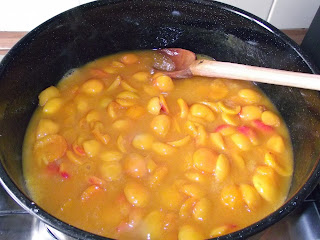 Fructele le punem cu zaharul intr-o cratita mare si o lasam de pe o zi pe alta, eu am lasat doar 2 ore.