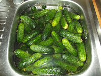 Se aleg castraveti frumosi si sanatosi care ii spalam si ii taiem felii subtiri.
